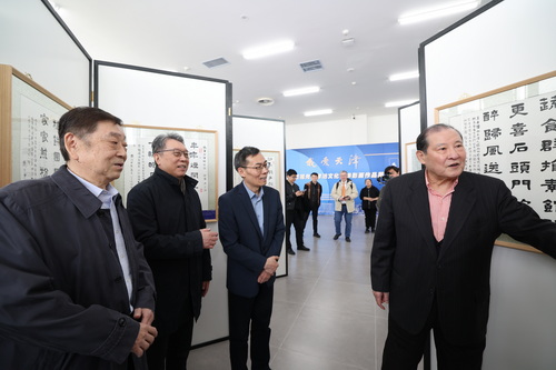 3月27日上午,“我爱天津”王述祖先生津沽文化诗书影画作品展开幕式在我校学术会议中心第二展厅举行。天津市原副市长、天津市人大常委会原副主任王述祖,天津市政府原副秘书长张晓雁,天津体育学院原党委书记张立顺,天津商业大学原校长刘书瀚,天津市商务局二级巡视员郎东,天津市财政局原副局长马强、梁宣健,天津市河北区原常务副区长金强,北方集团原董事长孙剑荣,中国著名人口学家、南开大学经济学院教授原新,著名书法家王树秋,天津市高尔夫球运动协会主席张强,南开大学管理学博士、思想政治工作研究员高桂鸿,天津市商务委员会科技处原处长陈绍泉,天津市历史学学会艺术史专业委员会会长齐珏,天津津湾文化旅游发展有限公司执行总裁孙露,我校党委书记张亚,党委副书记、校长陈冠益出席。天津体育学院、天津商务职业学院、天津理工大学中环信息学院、天津市菜市场经营服务行业协会等单位的领导老师、天津商业大学师生代表参加。开幕式由校党委副书记王立云主持。