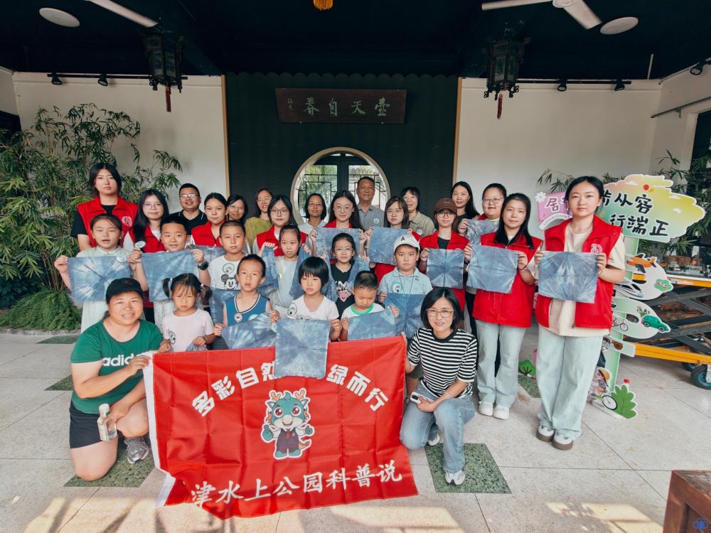 “天津水上公园科普说”与天津商业大学艺术学院师生两大团队强强联手,依托绿肺生态空间,融合AI构建自然、科技与人文交织的生态探索空间,引领青少年解锁“人与自然和谐共生”的未来密码。活动中小朋友结合活动知识发挥想象,自己动手通过解锁“衣”扎染、“食”分类、“住”绿色、“行”未来环节集齐了4枚商大学生自创的低碳徽章,打造了属于科普小使者的绿色科技世界。