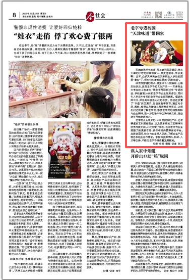12月28日,《中老年时报》、《今晚报》、津云客户端报道我校举办“带老字号回家过年”专场活动。